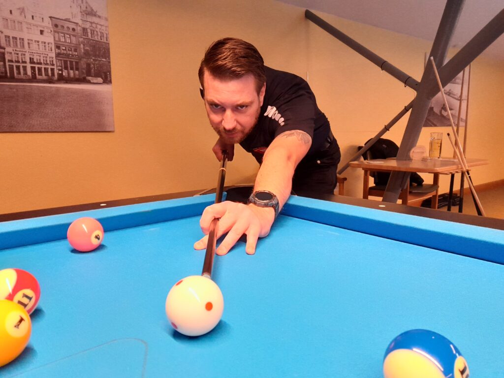 Am nächsten Tag stand dann die Begegnung gegen den Tabellennachbarn Joker Kamp-Lintfort auf dem Programm, in der man sich ebenfalls durchaus eine Chance auf einen Punktgewinn ausrechnete. Jedoch gab es für das Team auch dieses Mal leider eine Enttäuschung, da sich die Mannschaft am Ende knapp und auch etwas unglücklich mit 3:5 geschlagen geben musste. Dabei begann die Begegnung erneut recht verheißungsvoll, da in der Hinrunde wiederum Jörg Saborowski die Auftaktpartie im 14.1 endlos knapp für sich entscheiden konnte, bevor die nächsten Partien dann leider an den Gegner gingen. Jedoch sorgte anschließend Samir Hadzibajramovic mit einem knappen Sieg im 10-Ball dafür, dass es zur Pause wie schon am Vortag 2:2 Unentschieden stand. Leider fiel dann zu Beginn der Rückrunde die Entscheidung zu Ungunsten der PBSC-Akteure, da hier die ersten drei Partien allesamt verloren gingen und damit die Niederlage bereits vorzeitig besiegelt war, woran auch der abschließende knappe Sieg des wiederum glänzend aufgelegten Jörg Saborowski im 10-Ball nichts mehr ändern konnte. In der Tabelle rutschte die Mannschaft dadurch wieder um einen Platz nach unten und belegt jetzt wieder den siebten und damit vorletzten Rang.